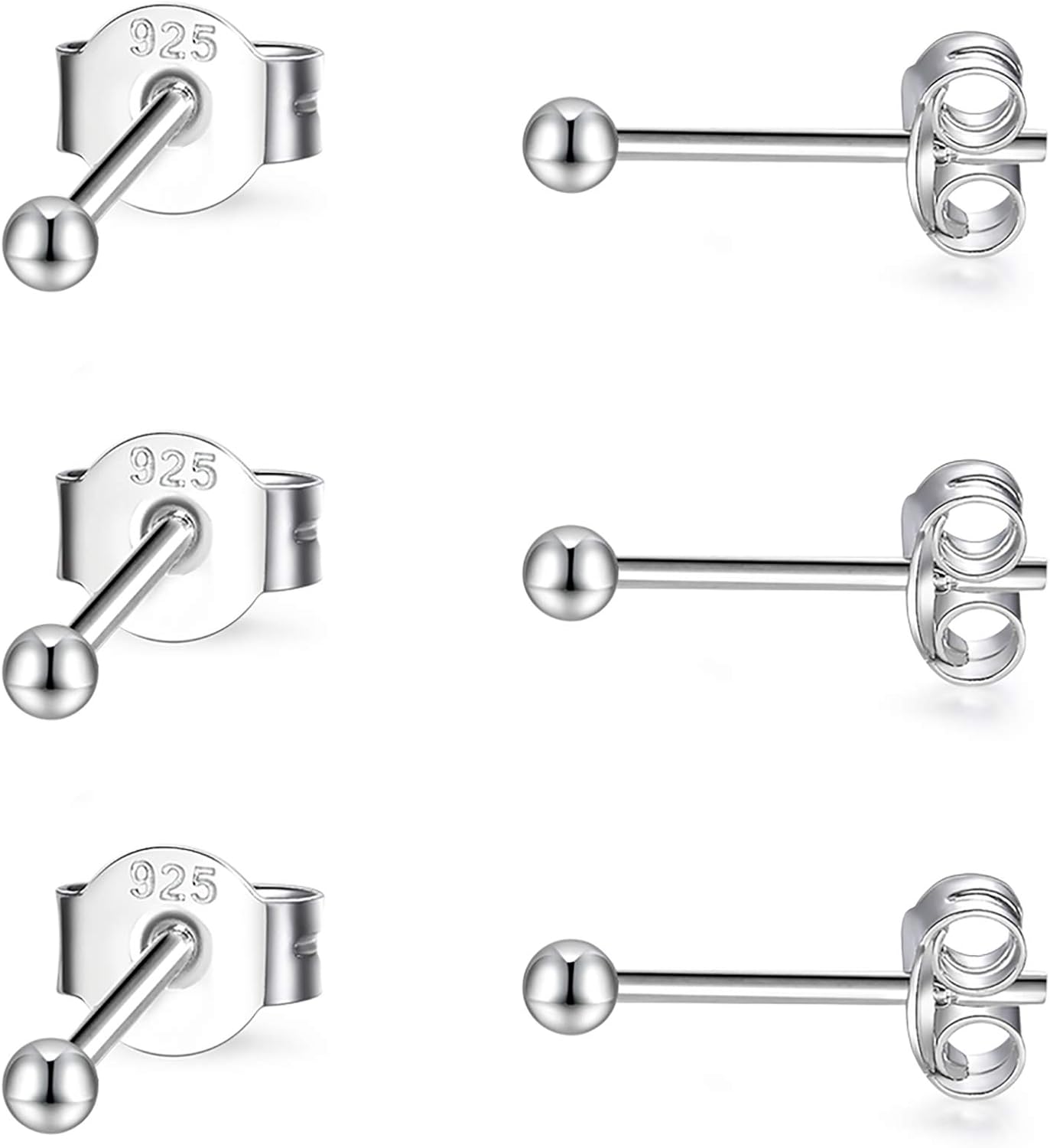 EPIRORA Sterling Silver Stud Earrings for Women- 3 Pairs of 2mm Tiny Ball Stud Earrings Round CZ Cubic Zirconia Earrings Pearl Earrings Set Cartilage Small Tragus Earrings Nose Lip Rings