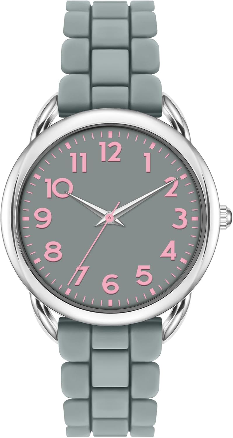 Asan Ge Analog Watch for Women Large Numerals Face Easy Time Reading Silicone Strap Casual Watch Water Resistant 100 feet