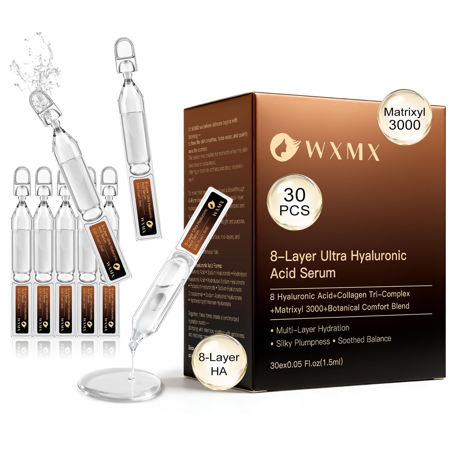 Ultra Hyaluronic Acid Serum With 8 HA Forms + Matrixyl 3000, Collagen Tri - Complex & Peptide, Multi - Layer Hydration Anti-Aging Serum, Hyaluronic Acid Serum for Face(0.05 Fl.oz x 30e)