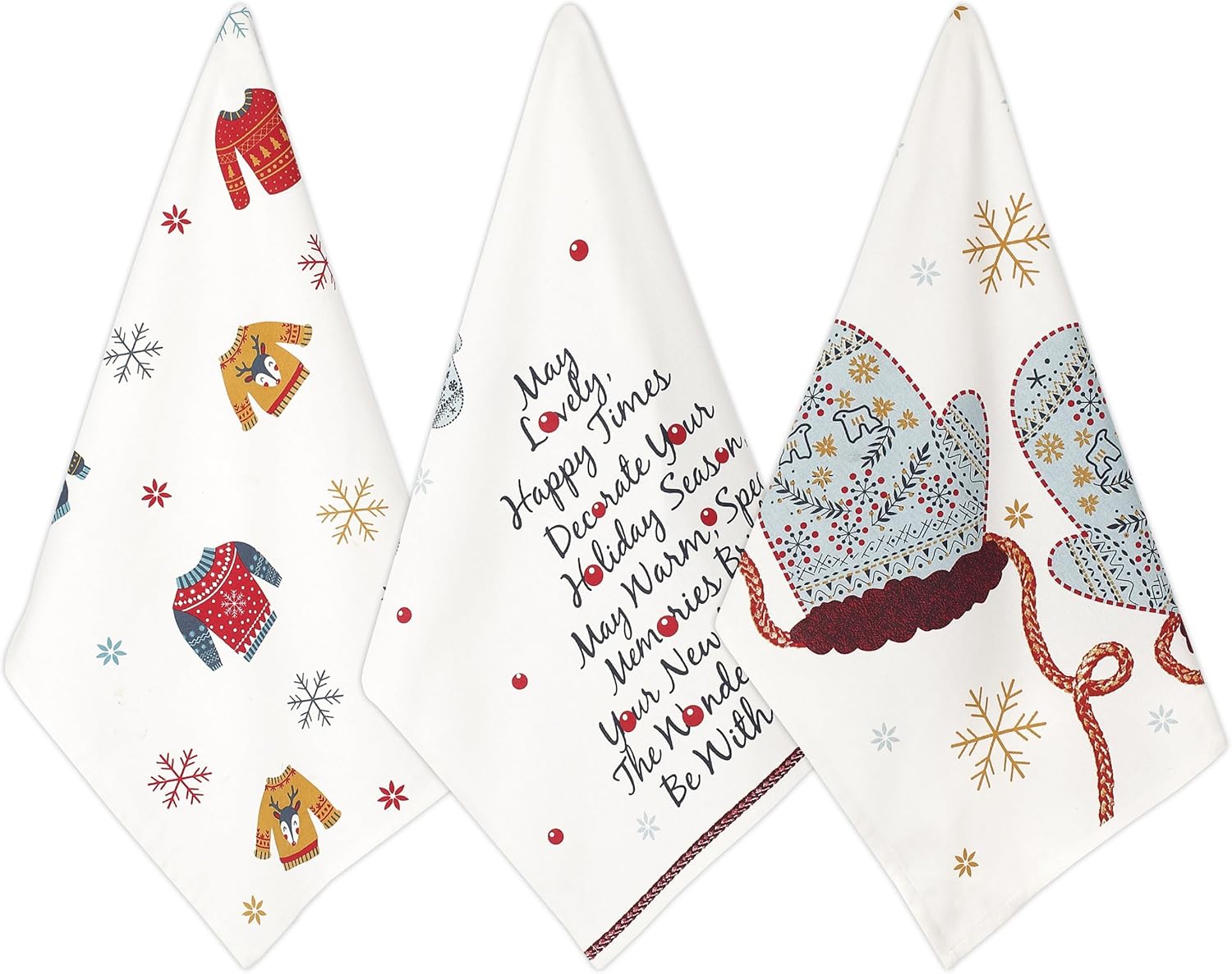 Folkulture Christmas Kitchen Towels Set of 3 | 100% Cotton 20×26 Tea Towels & Dishcloths | Modern Farmhouse Holiday Kitchen Décor | Soft & Absorbent Dish Towels | Christmas Sweater Pattern Set