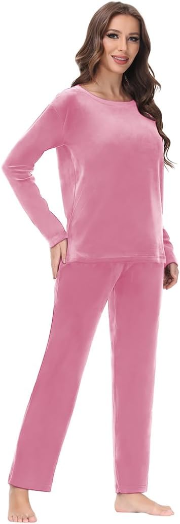COZZIPLUS Women Velour Sweatsuits Sets Lounge Set 2 Piece Sweatsuit Crew Neck Sweatshirt and Sweatpant Velvet Jogging Suit