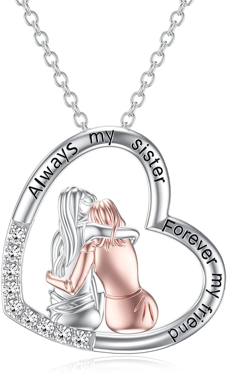POPKIMI Sister Gifts from Sister/Brother Two Three Four Five Sisters Necklace Sterling Silver Crystal Fashion Jewelry Gift for Women Friend Female Friendship Lasts Forever
