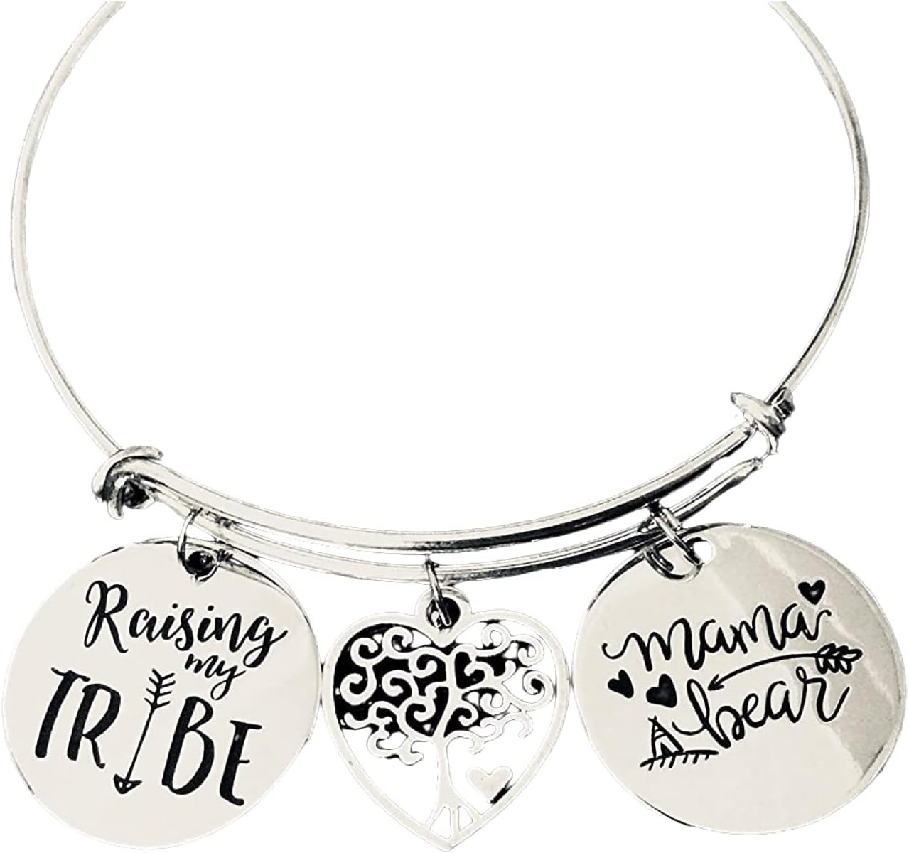 Mama Bear Raising My Tribe Adjustable Bracelet Tree of Life Silver Expandable Charm Bracelet Bangle Trendy Mother Mom Family Gift