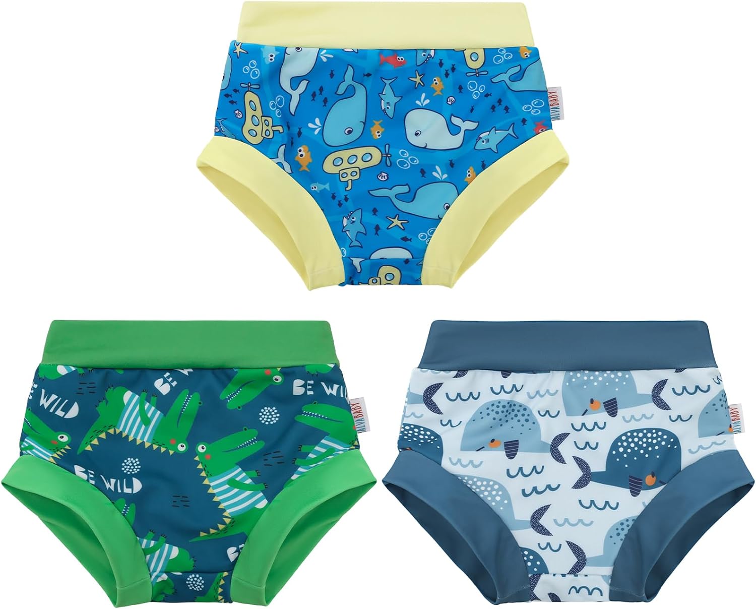 ALVABABY Swim Diapers 3pcs Baby & Toddler Reusable Waterproof Swimming Diaper for Boy's and Girl's for Swim Classes 3XBS03-12-18M