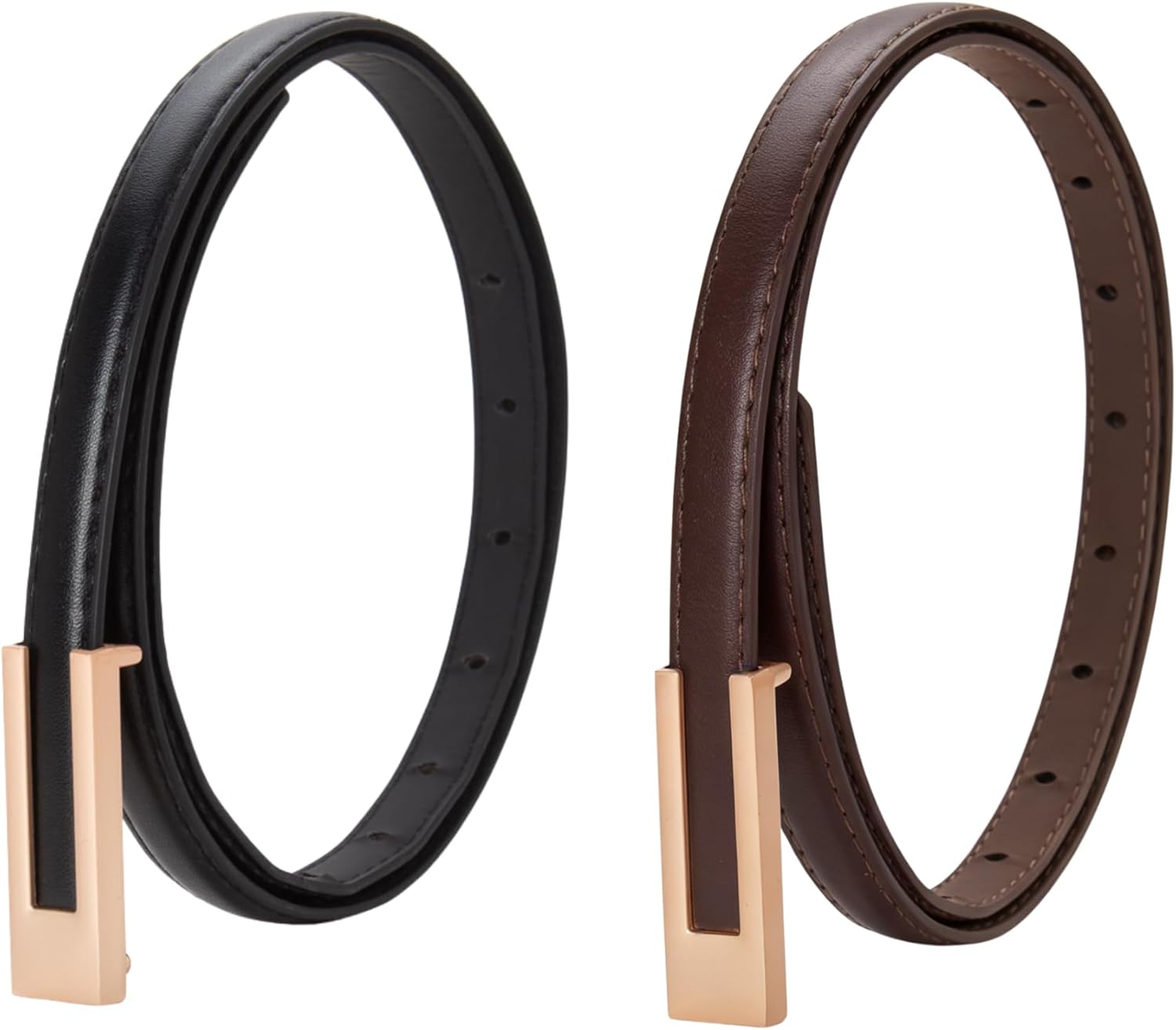 XEF Skinny Belts for Women Dresses Trendy Leather Waist Belt for Pants Jeans with Gold Buckle