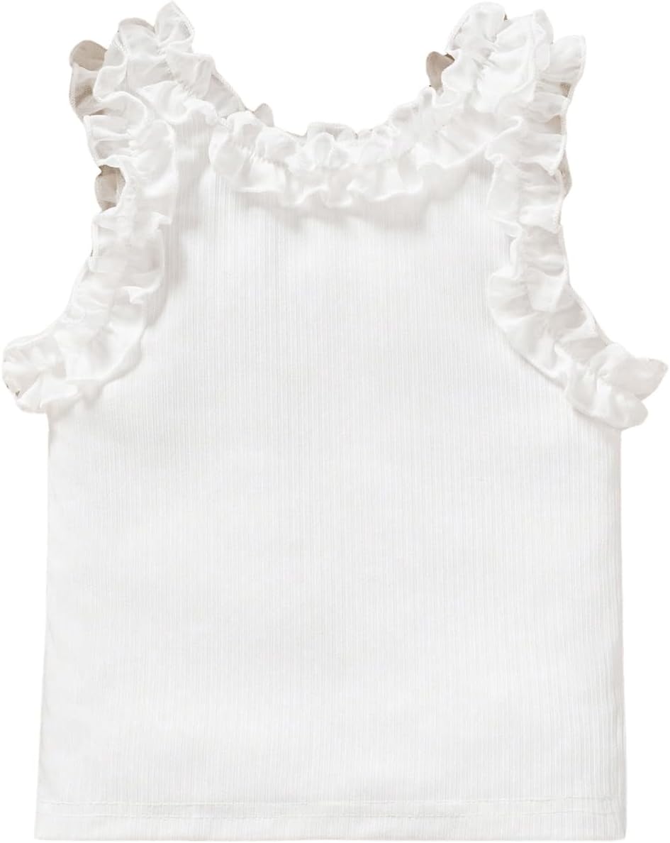 GORGLITTER Girl's Sleeveless Tees Crop Tops Round Neck Ribbed Knit Cute Tank Top