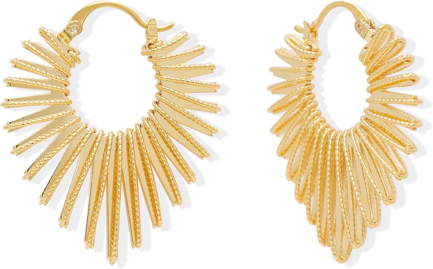Gold Silver Chunky Sun Hoop Earrings for Women, Statement Sunburst Leaf Geometric Sunray Sculptural Dangle Prom Wedding Accessories Fashion Jewelry Gift