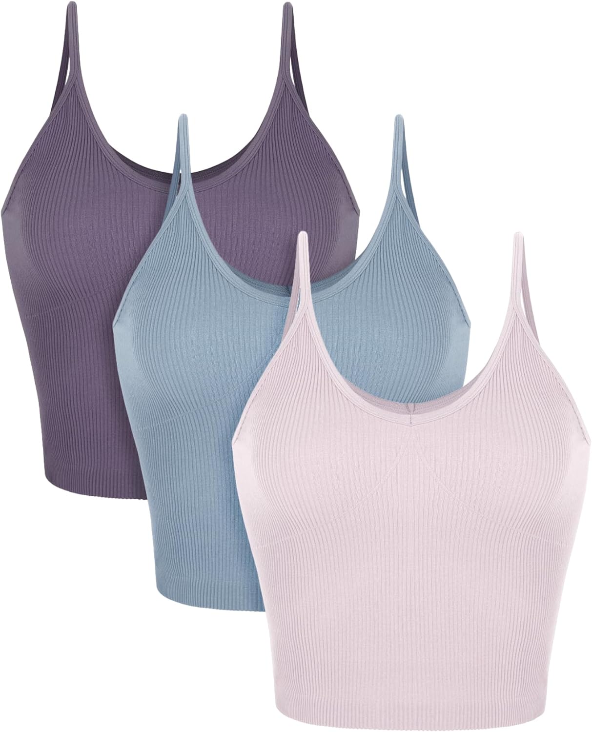 ODODOS V Neck Seamless Crop Tank for Women Ribbed Knit Soft Cropped Camisole Tops