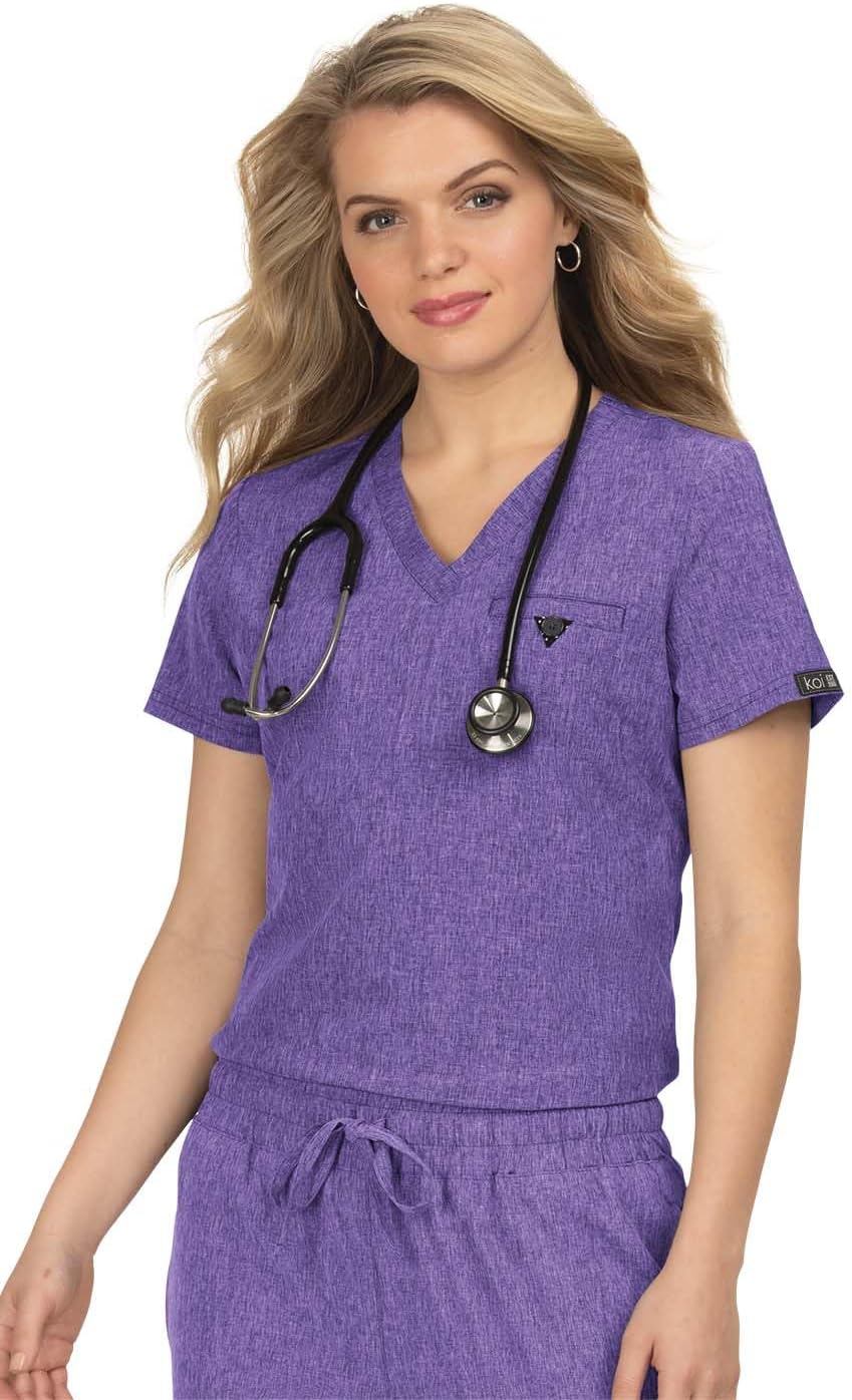 KOI Basics Kade Women's 1-Pocket Tuck-in Scrub Top Heather Wisteria X-Large