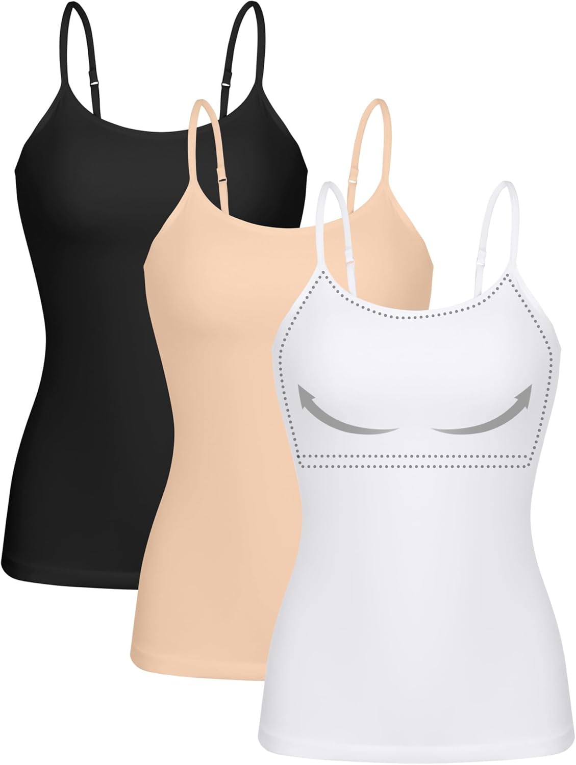 ATTRACO Women 3 Pack Cotton Camisoles wtih Shelf Bra Adjustable Spaghetti Strap Tank Tops
