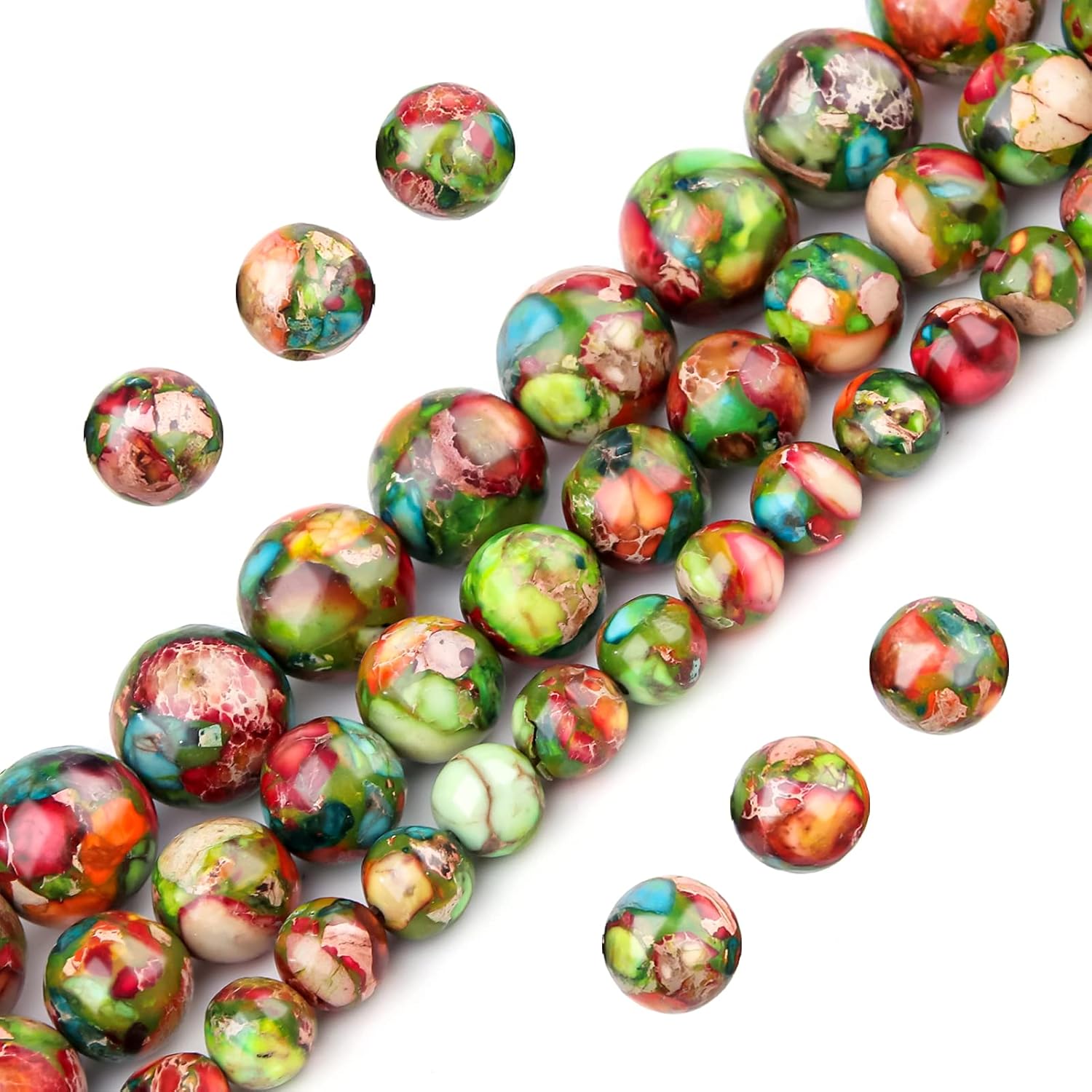Natural Stone Beads 8mm Green Red Imperial Jasper Polished Round Smooth Gemstone Beads for Jewelry Making Adults 15 Inch(Green Red Imperial Jasper,8mm)