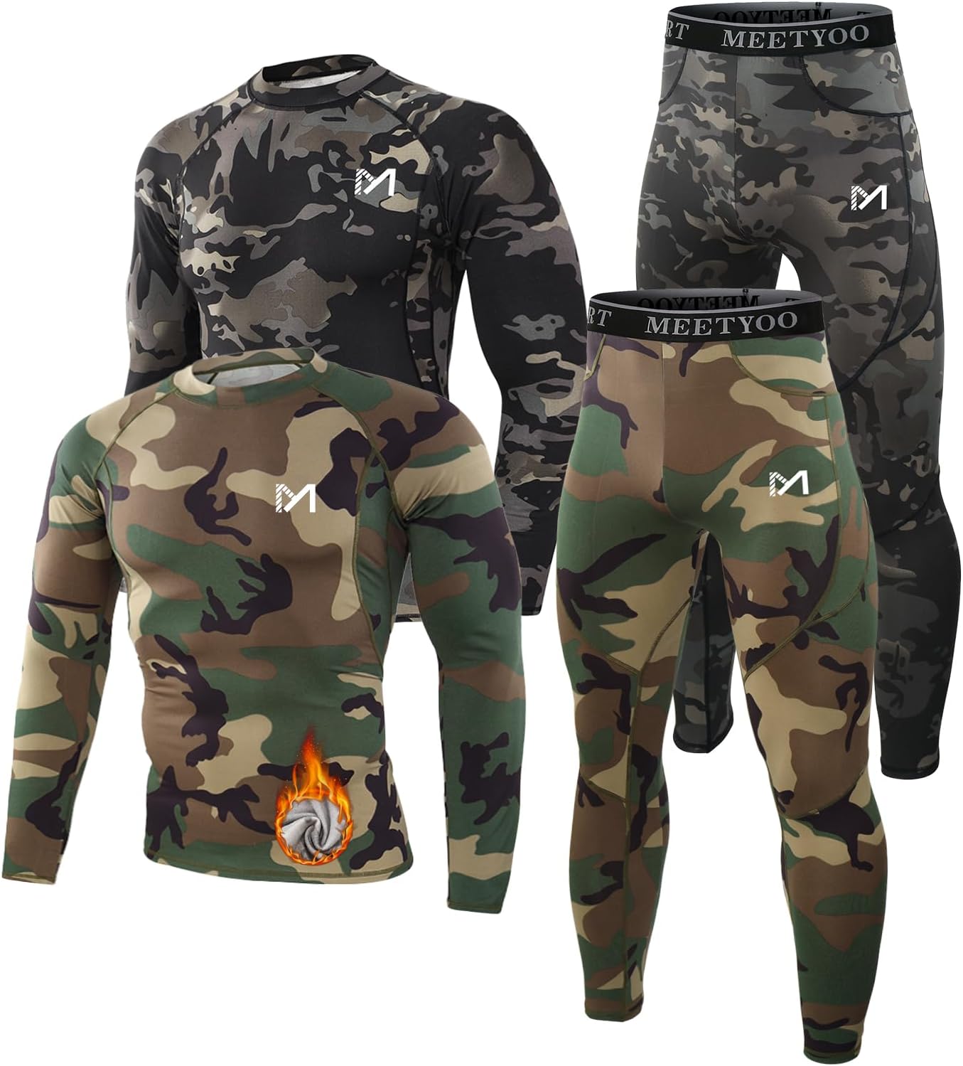 MEETYOO Thermal Underwear for Men,Men's Base Layer,2 Sets Long Johns Lined with Hunting Gear