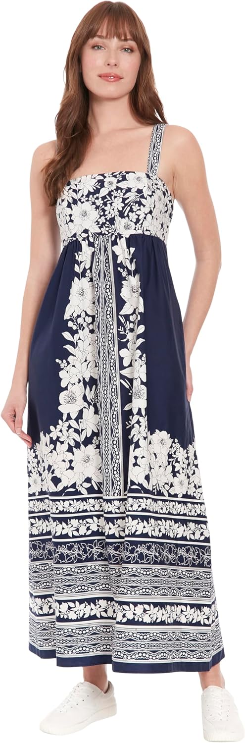 London Times Womens Square Neck A-line Maxi Dress with Adjustable Straps and Pockets | Summer Dresses for Women