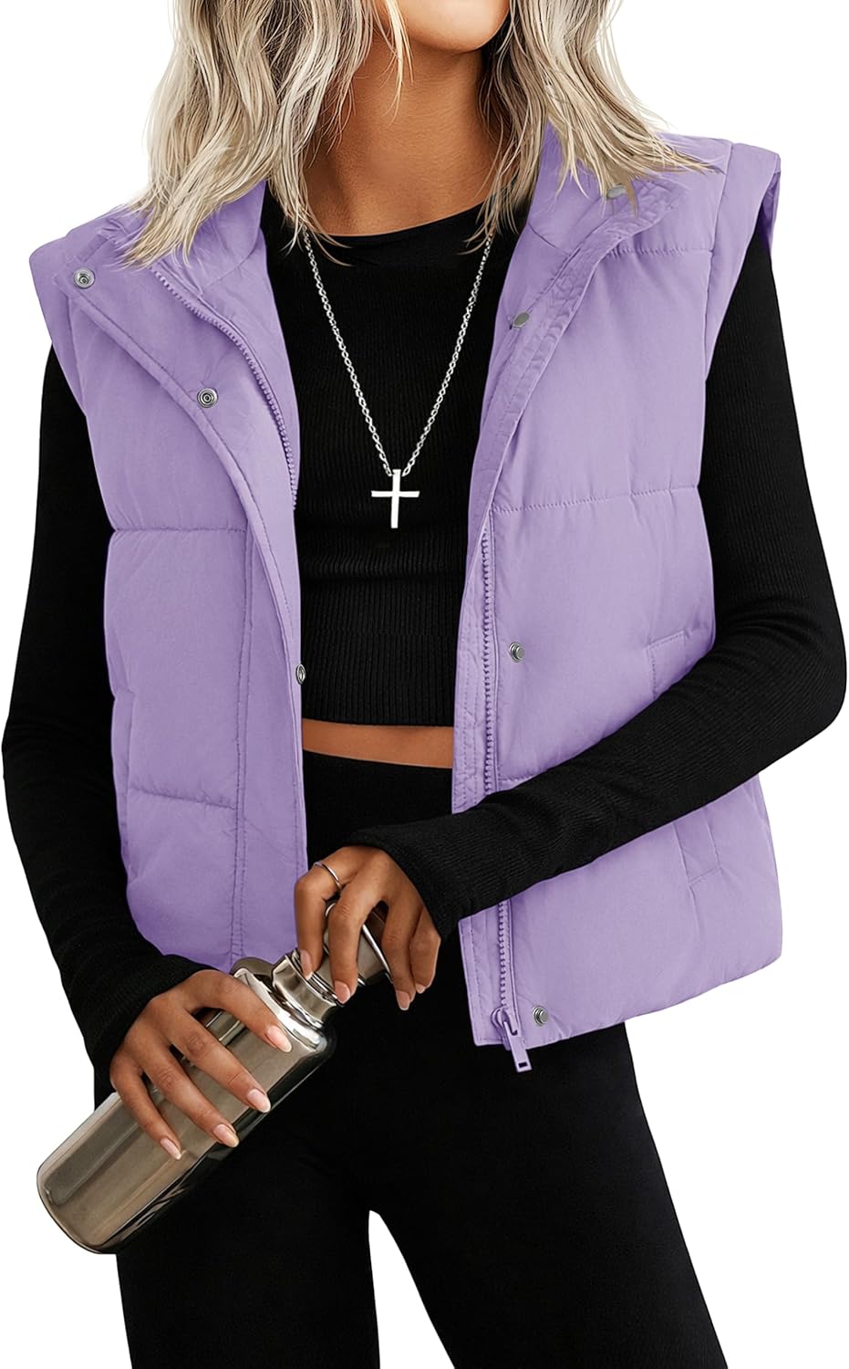 YUCOLEN Womens Puffer Vest Sleeveless Lightweigh Cropped Vests Button Zip Up Winter Warm Outerwear Stand Collar Trendy Coat