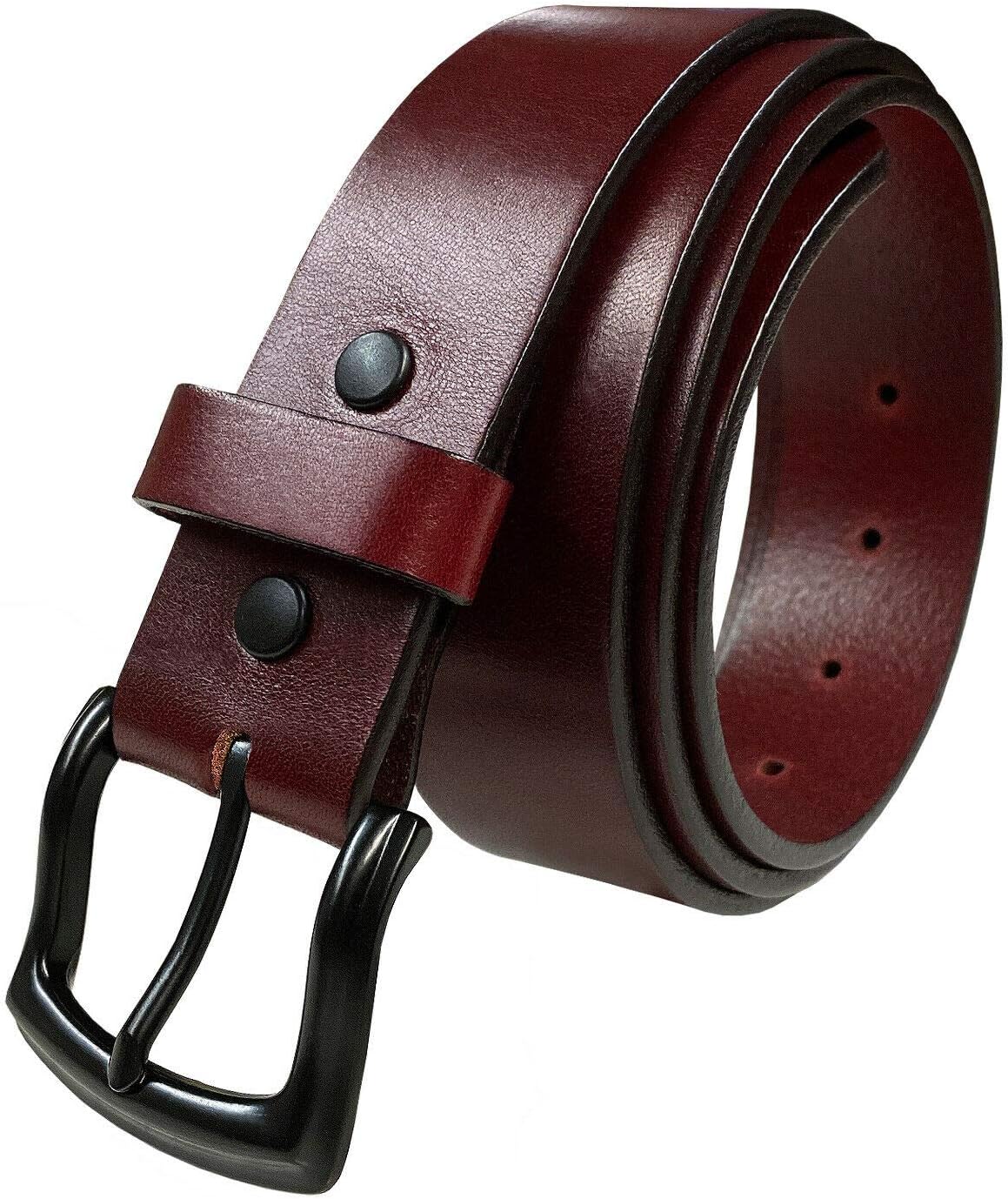 BS055 Burgundy Casual Jean Belt Genuine Full Grain Leather Belt 1-1/2" (38mm)/ 1-3/8'' (35mm) wide
