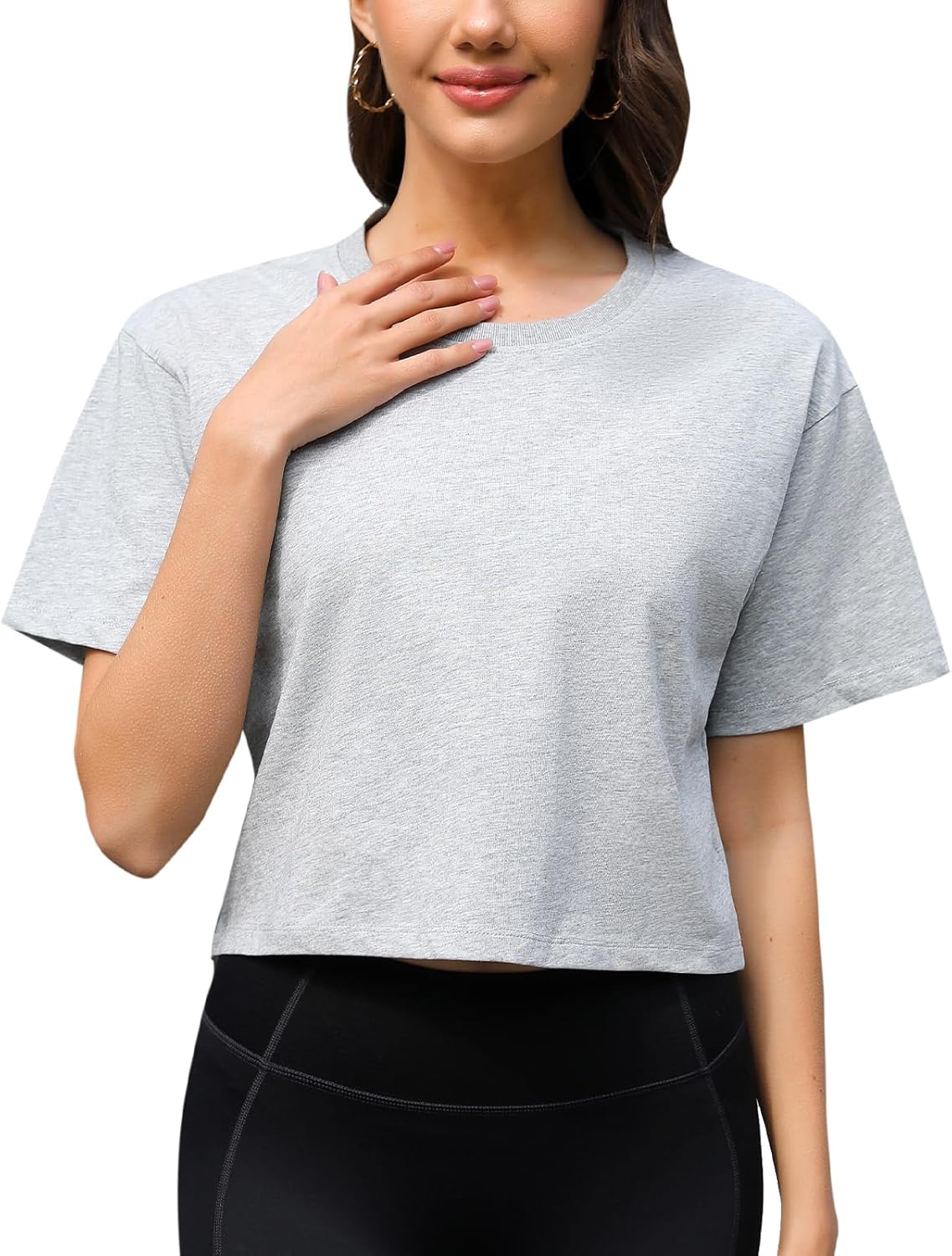 Women Workout Crop Top T-Shirt 100% Cotton Drop Shoulder Half Sleeve Oversized Yoga Running Cropped Loose Tee