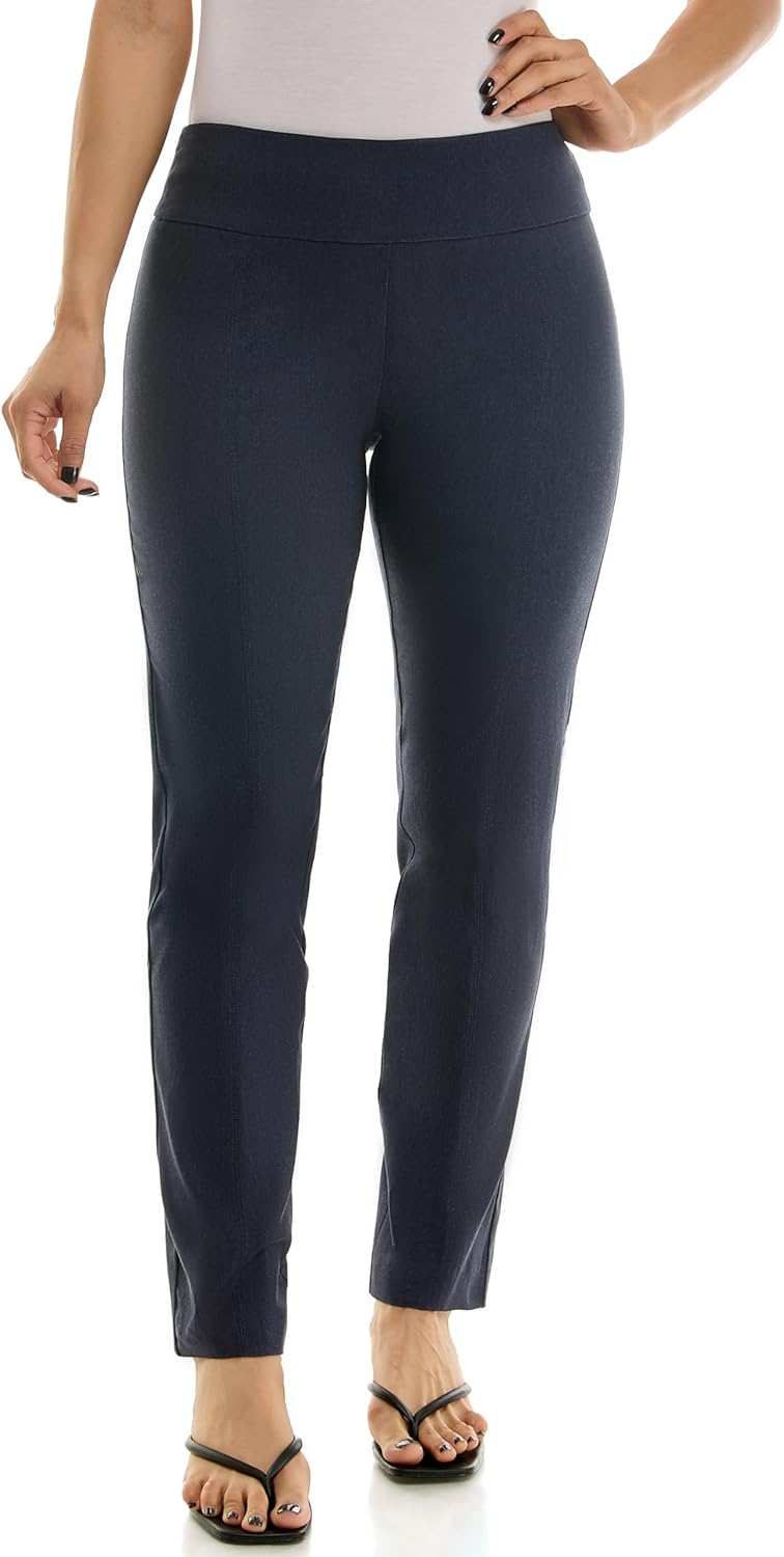 Zac & Rachel Women's Millennium Fabric - Slim Leg Pull-On Pant, Heathered Navy, 6