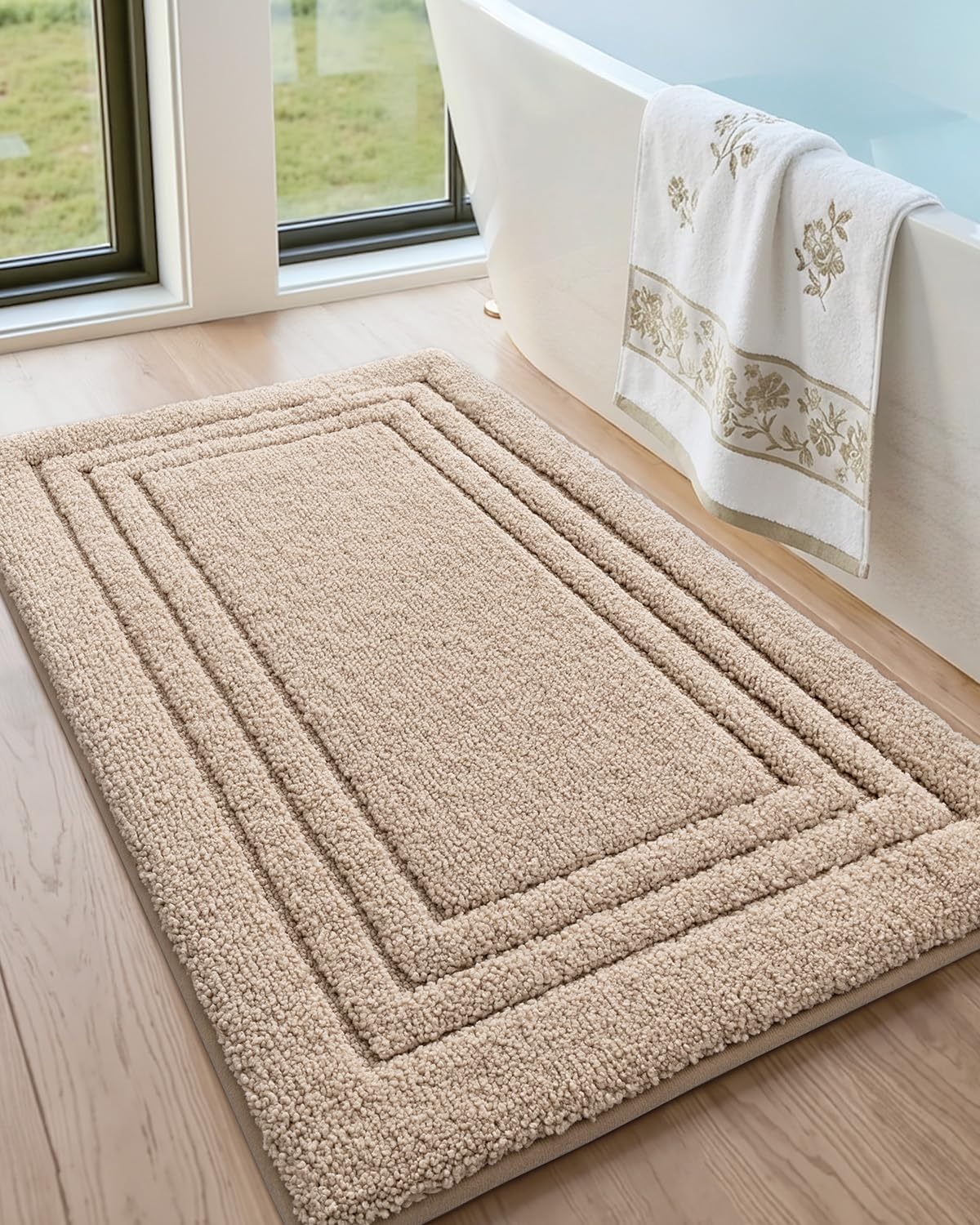 DEXI Bath Mats Bathroom Rug, 36x24 Large Non Slip Bathroom Rugs Washable, Absorbent Bathmat Quick Dry for Shower Floor Sink, Beige