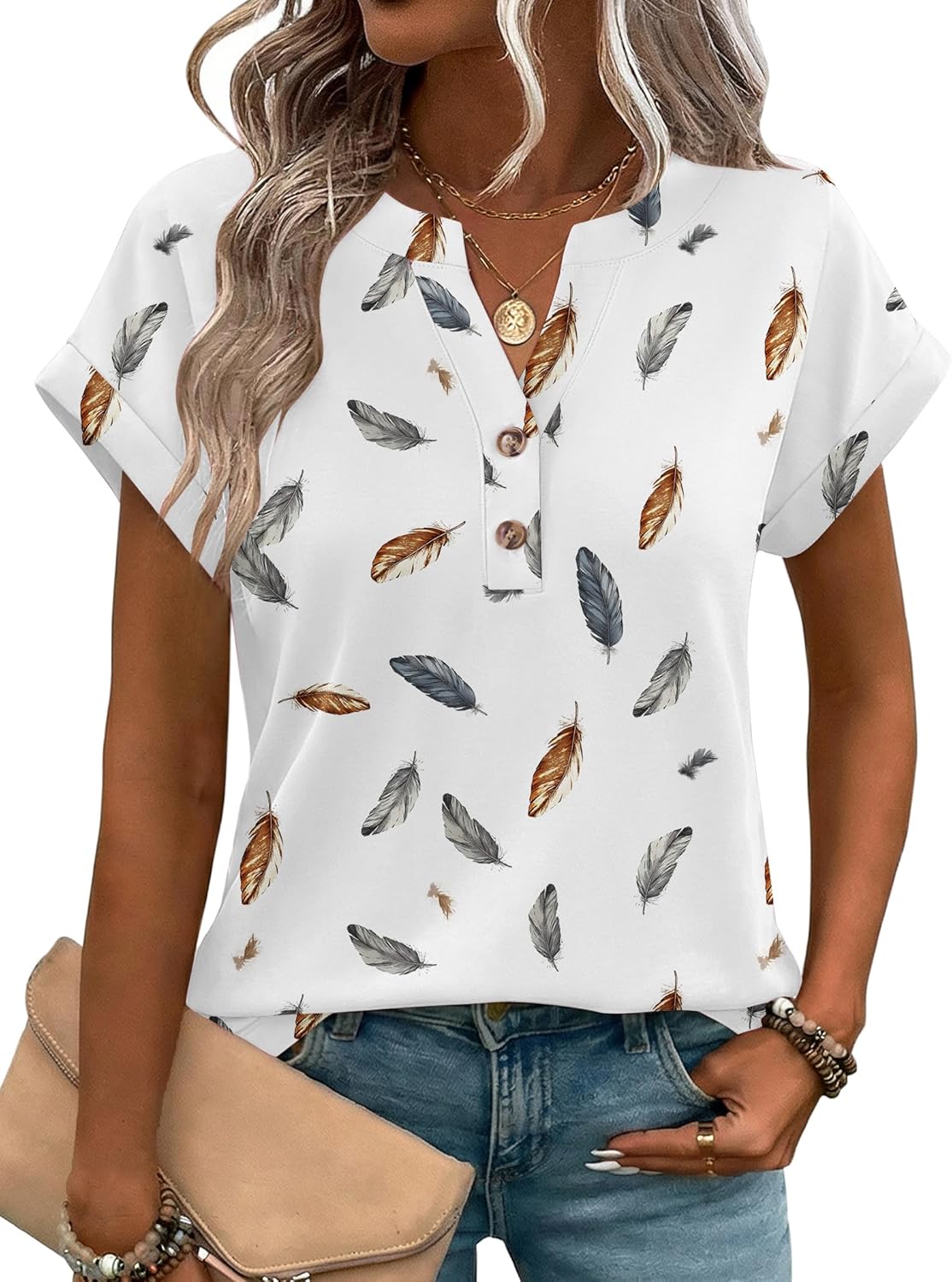 Zeagoo Women Tops Summer Short Sleeve T Shirts V Neck Dressy Casual Work Blouses Fashion Boho Clothes S-3XL