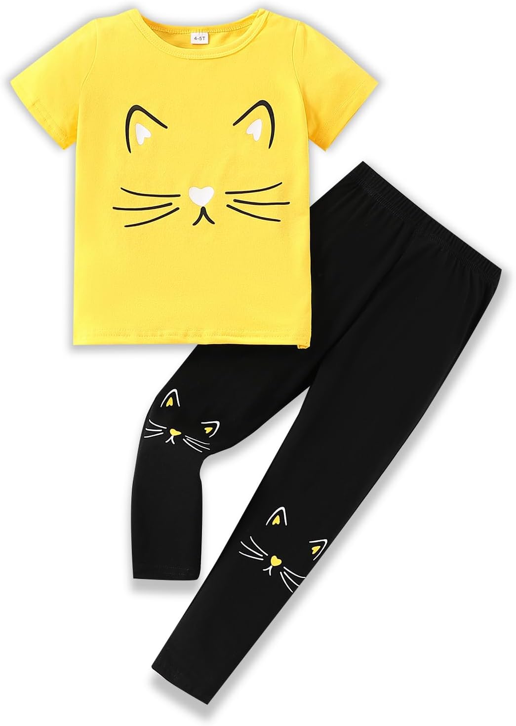 4-8T Toddler Girl Clothes Cat face print Short Sleeve Top+Pants Outfits Girl Spring and summer 2-Piece Set