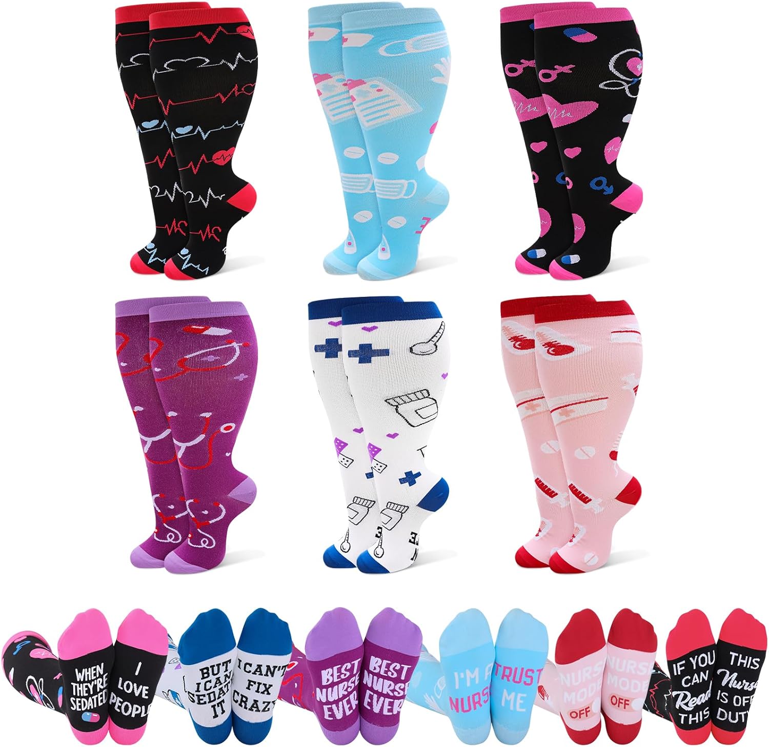 Jspupifip 6 Pairs Plus Size Compression Socks for Women Wide Calf Extra Large Knee High Support for Travel Yoga Running Circulation