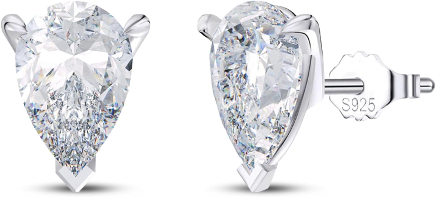 Faux Diamond Stud Earrings For Women 14k White Gold Plated Sterling Silver Cubic Zirconia Earring Studs for Her by Ginger Lyne 9x6mm 2.66 ct Princess Cut Pierced Minimalist Jewelry