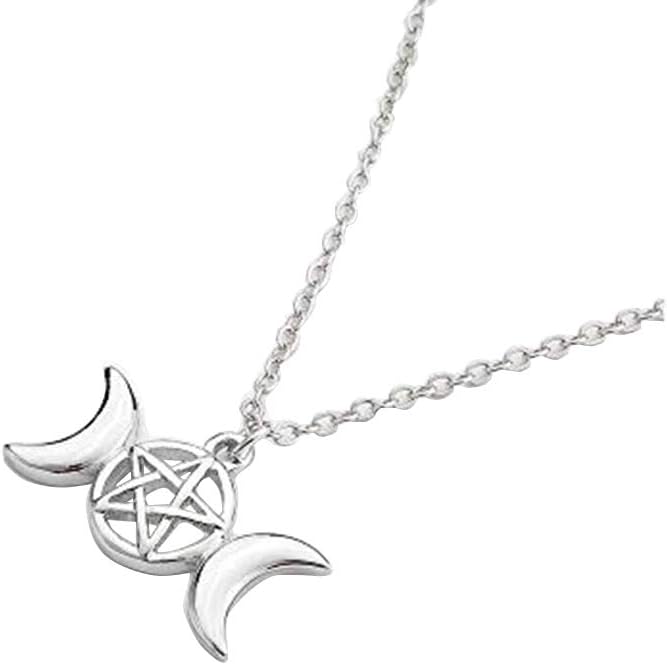 Triple Moon Goddess Pendant Necklace Pentacle Pentagram Wiccan Jewelry