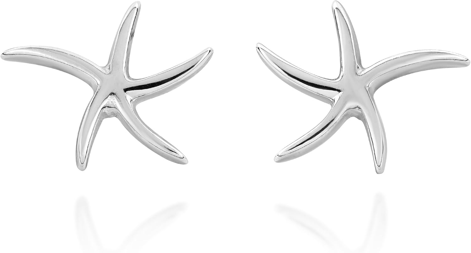 AeraVida Adorable Wavy Starfish .925 Sterling Silver Stud Earrings | Minimalist Ocean-Inspired Sterling Silver Earrings for Women | Lightweight Everyday Stud Earrings with Starfish Motif