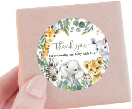 - These thank you stickers feature cute safari animals in a jungle scene thanking guests for attending the baby shower.