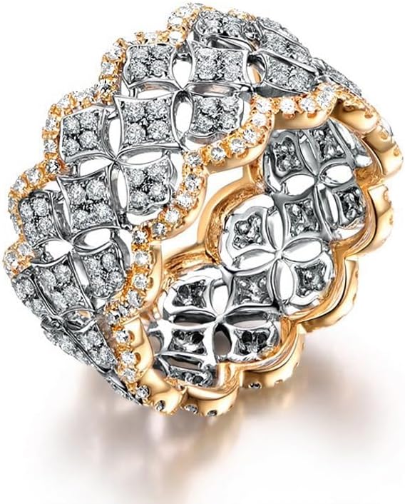 ENDLESSNESS & ETERNITY 14K Gold Plated Vintage Wedding Band Ring Court Style Cubic Zirconia Cocktail Ring Stackable Statement Promise Proposal Band Ring for Women