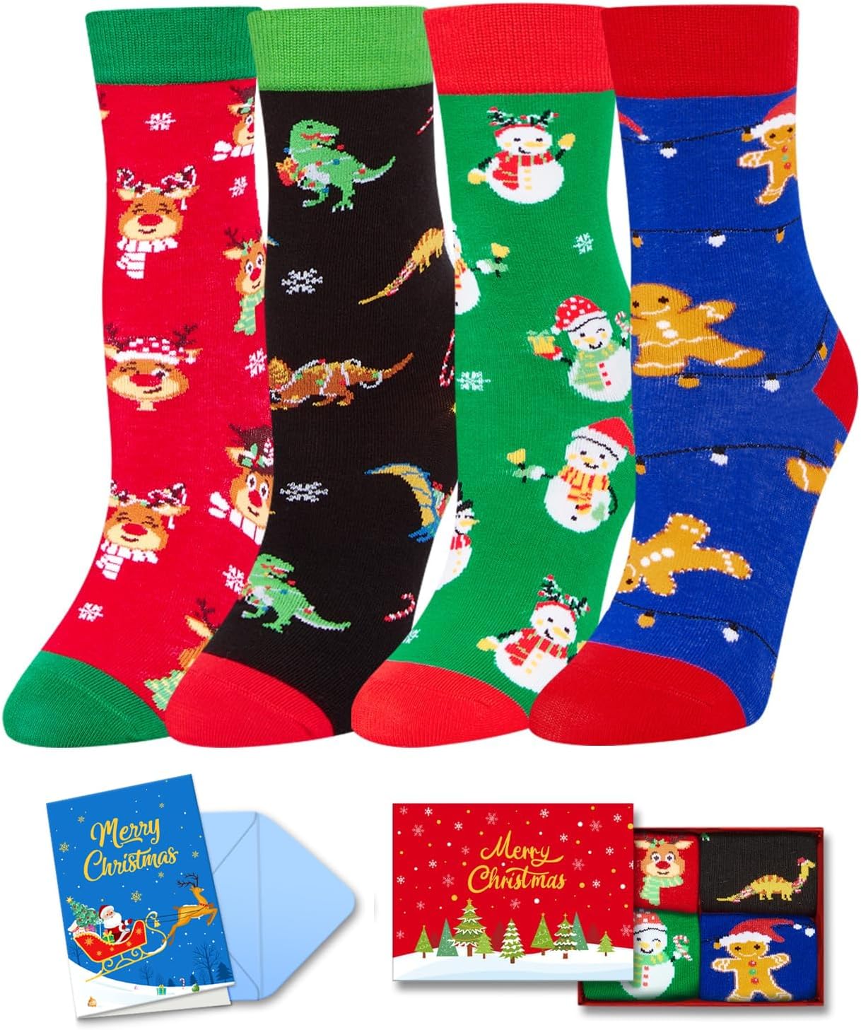 HAPPYPOP Christmas Socks for Kids - Funny Holiday Socks Xmas Gifts for Boys Girls 4 Pack