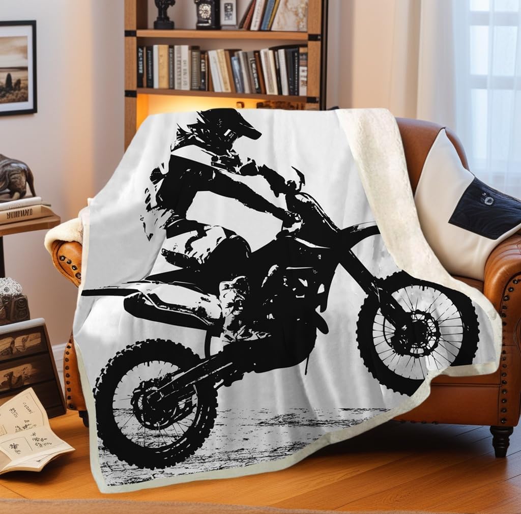 Dirt Bike Throw Blanket Motocross Racer Extreme Sports Printed Soft 3D Cool Plush Sherpa Kids Men Boys Girls Fleece Blankets 50"x 60"