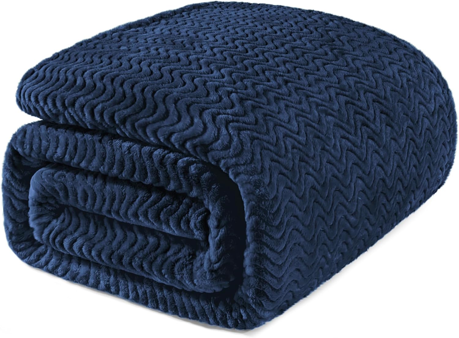 Exclusivo Mezcla Twin Blanket for Bed, Cozy Lightweight Fleece Blankets for All Season, Decorative Giftable Fuzzy Plush Wave Textured Suitable for Women, Men, Navy Blue, 90x66 Inches