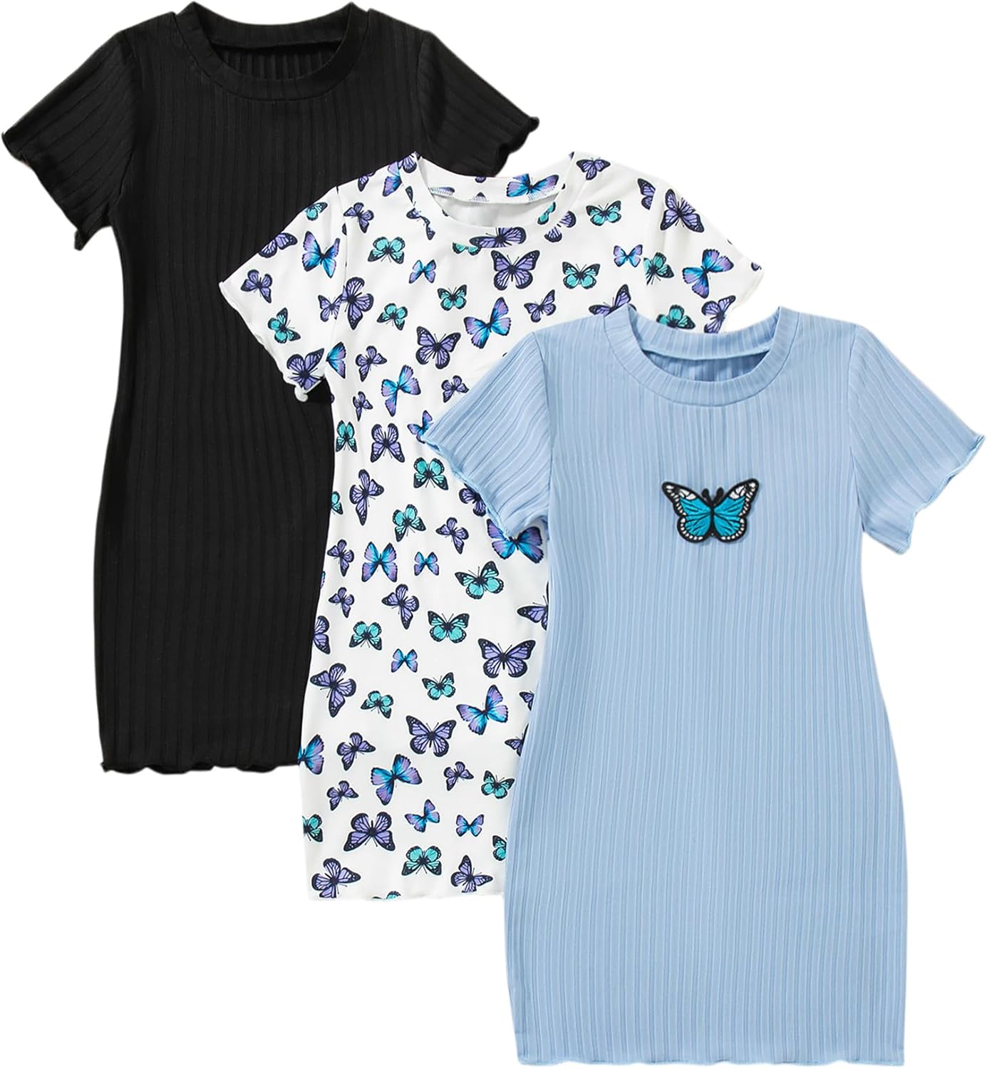 3 Pack Toddler Girls Shirts Short Sleeve Shirt for Girls Tees Kids Tshirts Clothes Summer Tops T-Shirt 2-8 Years