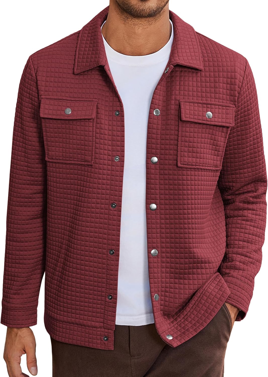 COOFANDY Mens Casual Shirt Jacket Button Down Waffle Jacket Long Sleeve Sweater Jackets Quilted Shacket Overshirt
