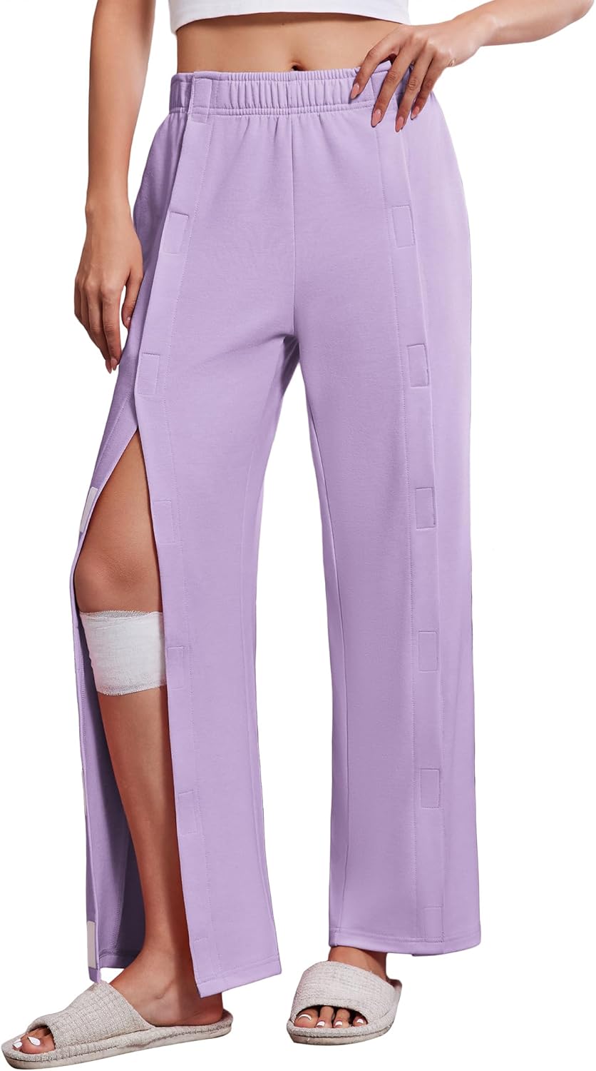 Deyeek Women's Tear Away Pants with Pockets Easy Access Adaptive Pants Post Hip Knee Leg Surgery Breakaway Lounge Sweatpants