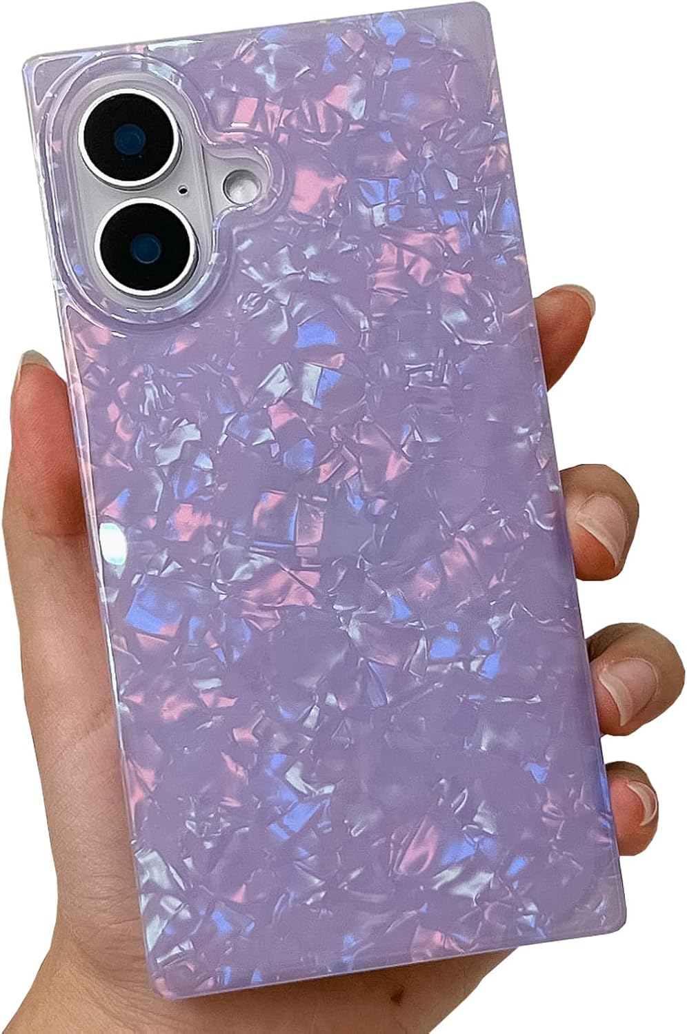 BANAILOA Compatible with iPhone 16 Case Rectangle for Women,Luxury Sparkle Colorful Shell Protective Soft Slim Girly Cover Designed for iPhone 16-6.1 inch (Purple Shell)