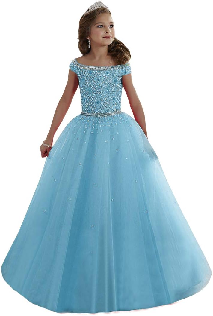 Junguan Girls' Off The Shoulder Pageant Dresses Tulle Aline Princess Prom Dress Formal Ball Gowns TF017