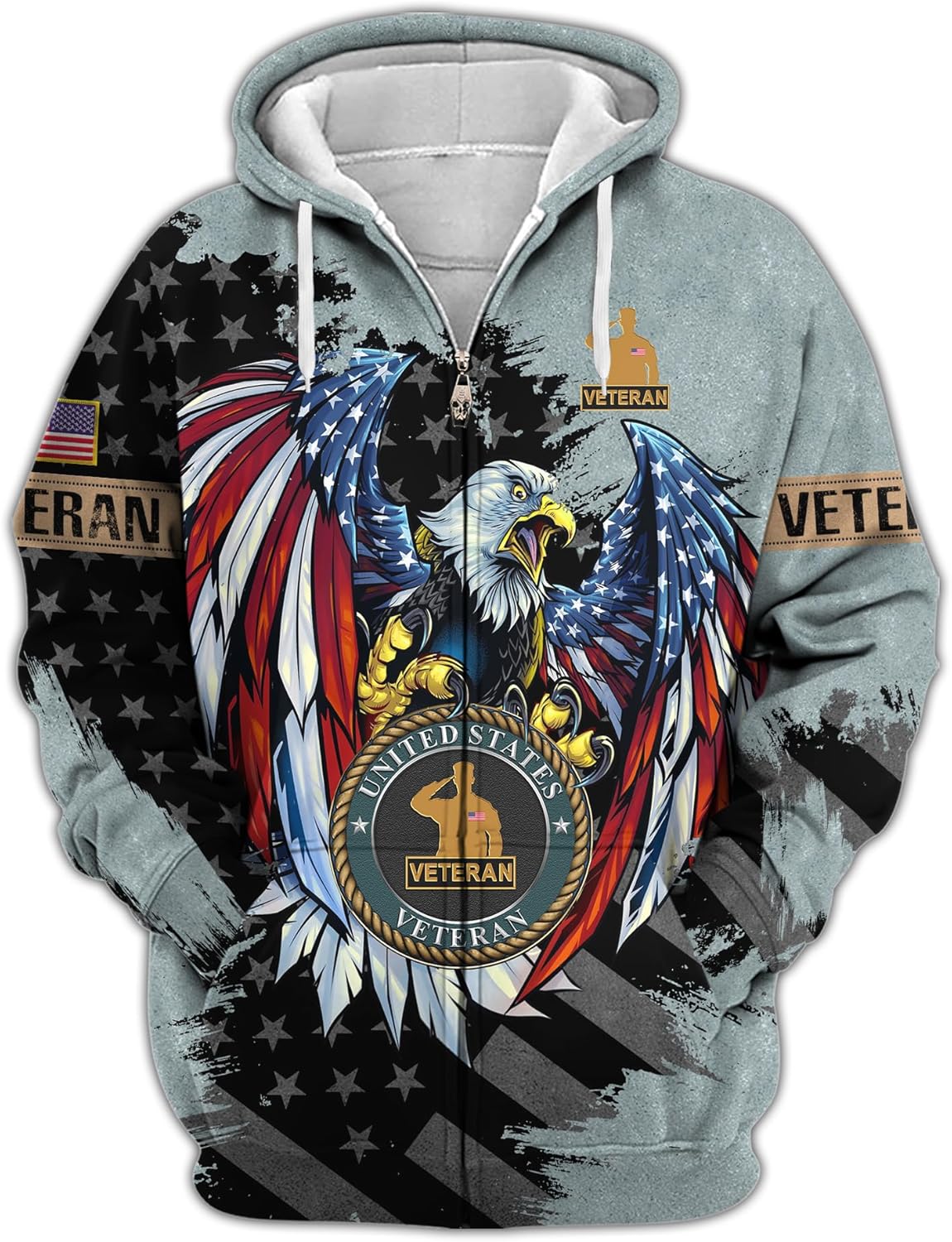 Bald Eagle Sweatshirt Veteran Zip-Up Hooded Sweatshirt Military Hoodie American Flag Hoodies For Men Patriotic Hoodie