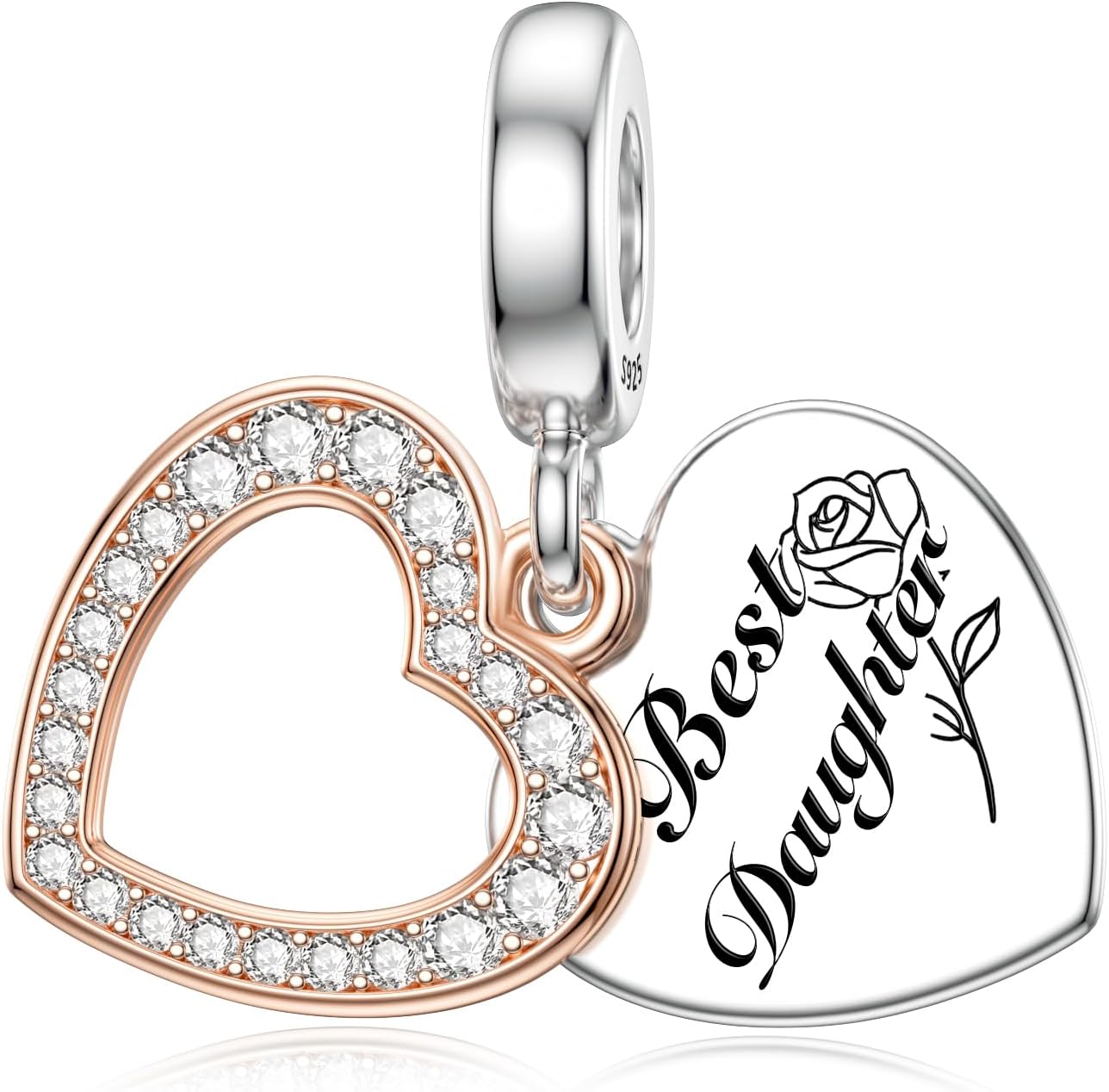 JIAYIQI Mother Sister Daughter Wife Charms Fit Charms Bracelet Necklace with Double Heart Love Charms 925 Sterling Silver Beads for Women Jewelry