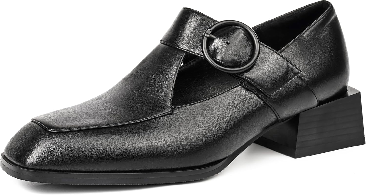 Womens Dress Shoes Chunky Heels Pumps Shoes Women Faux Leather Comfortable Black Dress Shoes for Women Dressy Casual