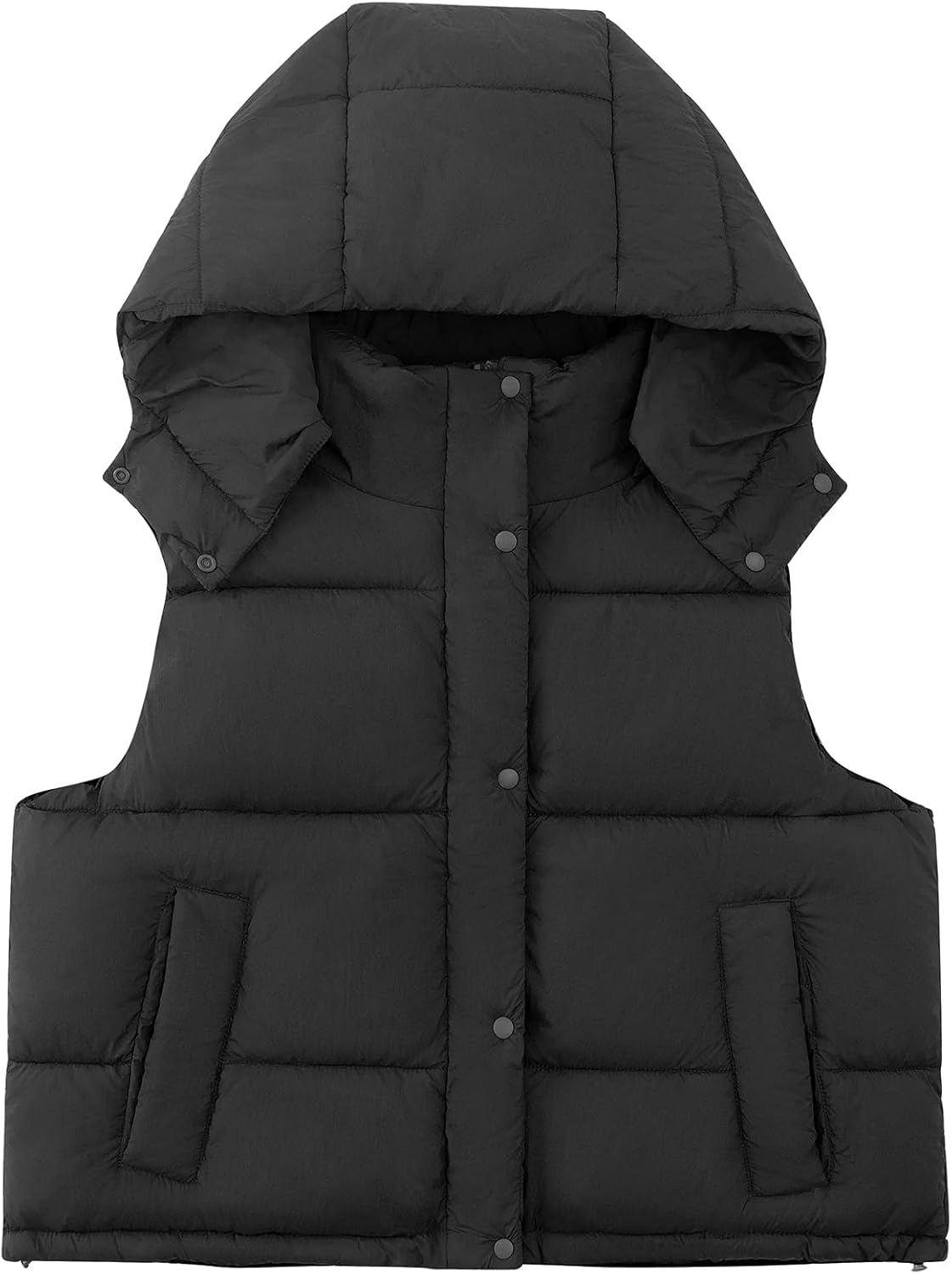 Women's Removable Hooded Puffer Vest Lightweight Quilted Stand Collar Sleeveless Jackets Warm Winter Outerwear Coat