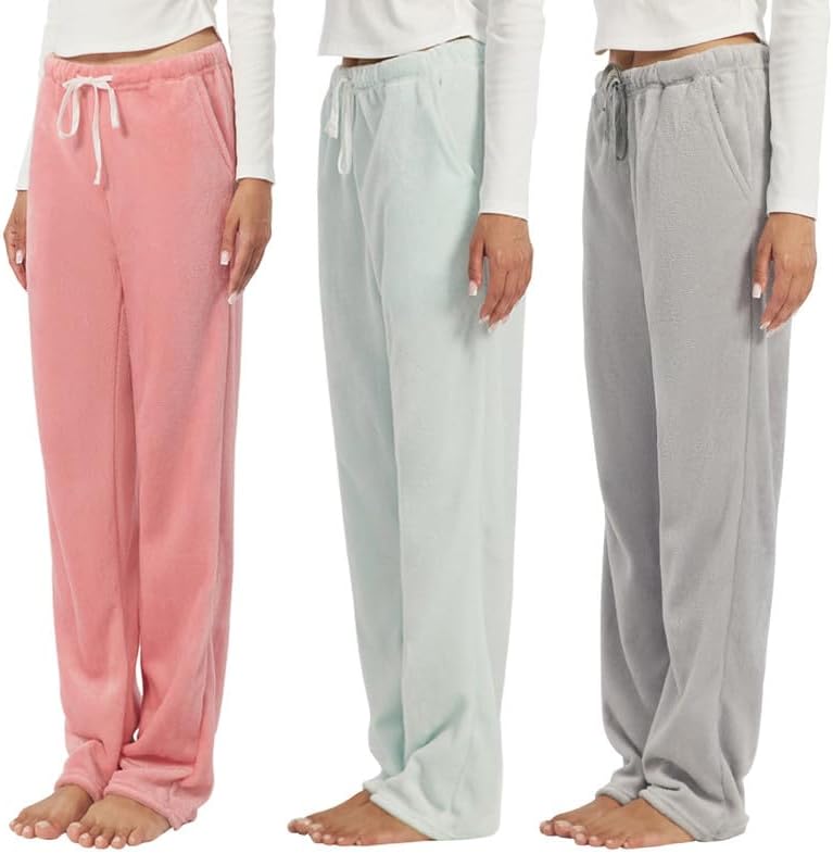 3-Pack Womens Fuzzy Pajama Pants – Soft Plaid PJ Bottoms with Pockets, Cozy Fleece Lounge Sleepwear Pants