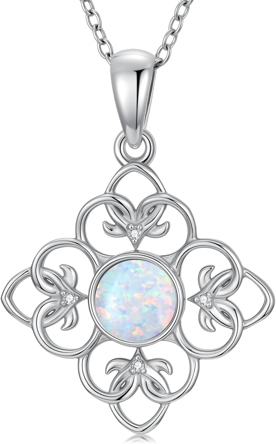 Opal with Diamond Necklace 925 Sterling Silver Round October Birthstone Gemstone Pendant Necklace Birthday Jewelry Gift for Women