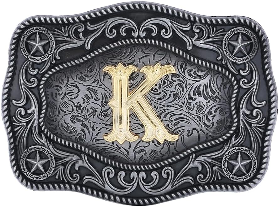 Initial Western Cowboy Belt Buckle with Letter for Men and Women