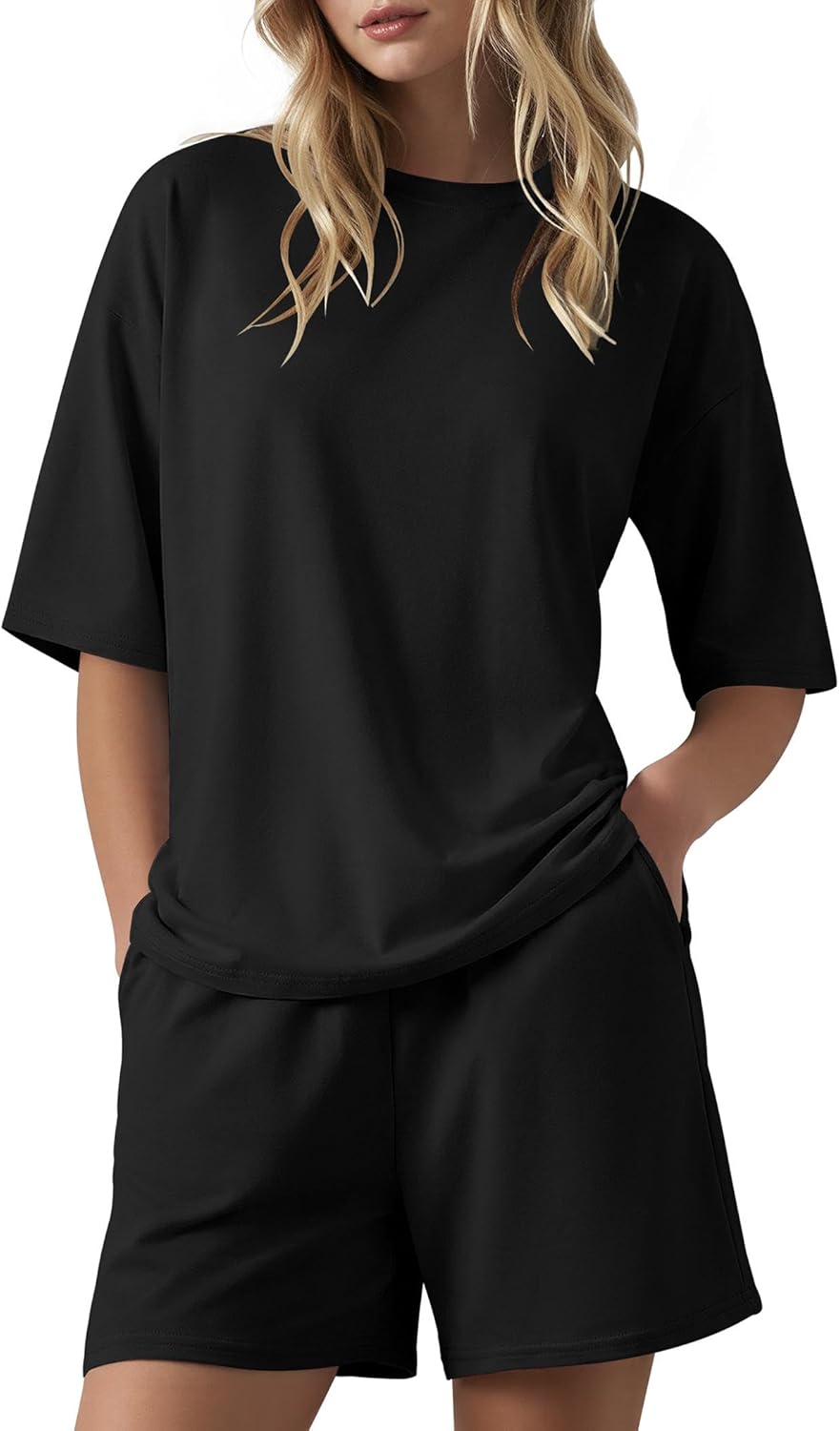 Ekouaer Women's Two Piece Lounge Set Oversized Boxy T-shirt Casual Short Sets Summer Travel Matching Set 2026 Fashion