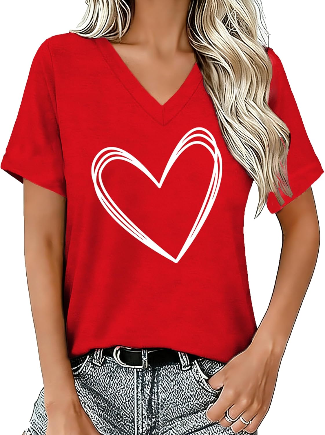 Valentines Shirts for Women Valentines Day V-Neck T-Shirt Heart Tee Tops