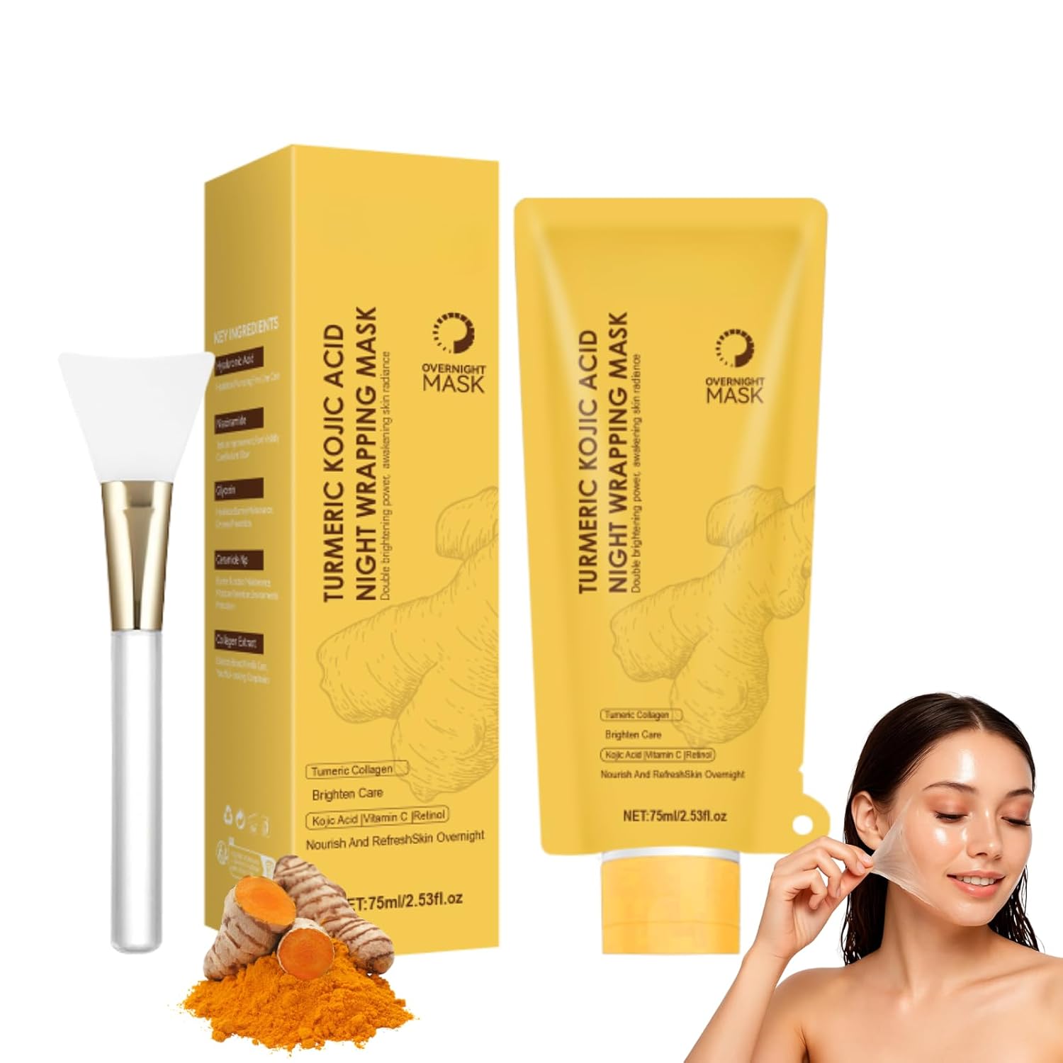 Turmeric Kojic Acid Overnight Mask - With Brush for Easy Application, Nourishes & Revitalizes Skin Overnight, Convenient Packaging - 75ml (1PC)