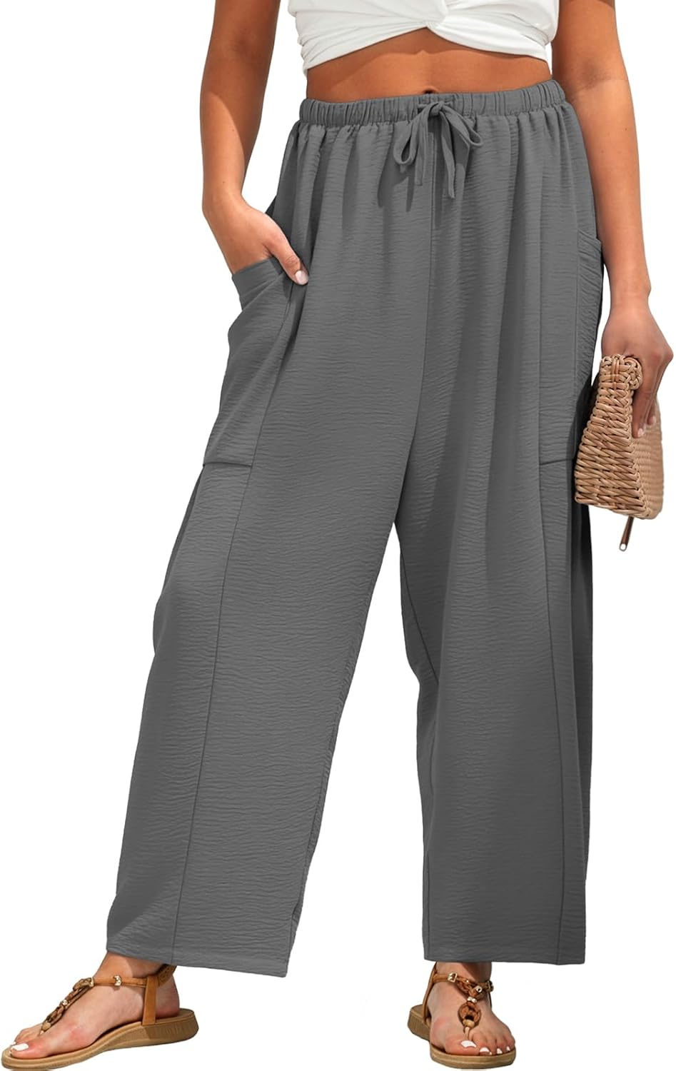 Womens Wide Leg Pants Casual Loose Palazzo Pants Summer Beach Travel Vacation Harem Pants with Pockets