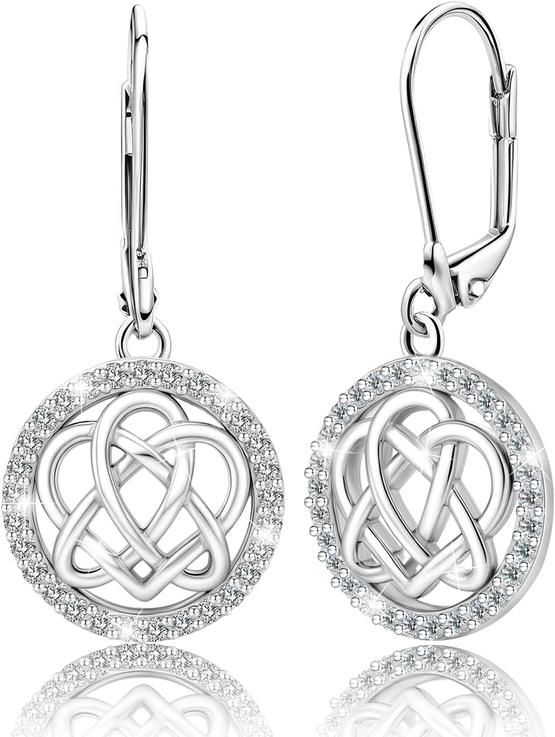Celtic Knot Earrings for Women Sterling Silver Trinity Love Knot Leverback Earrings Cubic Zirconia Witches Knot Circle Dangle Earrings Lightweight Earring Irish Celtic Jewelry Gift for Birthday